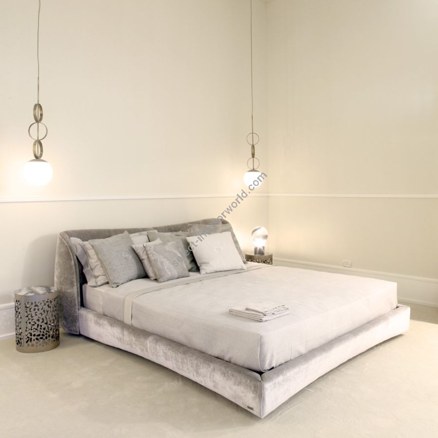 Refined bed in modern style characterized by an elegant enveloping headboard that plays on a balanced contrast between geometries and materials.