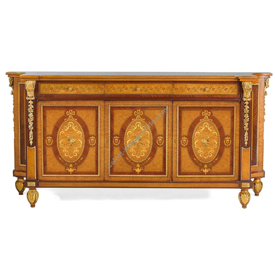 Classic style sideboard adorned with absolutely elegant combinations. Its handcrafted workmanship according to the Brianza tradition gives this complement a unique and personal touch that makes its beauty timeless and classic forever. Its pleasant design is the result of careful research that has resulted in a harmonious union between present and past, tradition and innovation. Its apparent simplicity hides its great design complexity. Its style represents a vision: the art of living through furniture and accessories in which design, style, material, new workmanship and tailoring create new aesthetic codes.