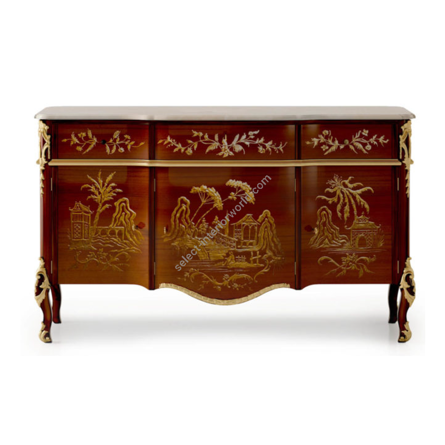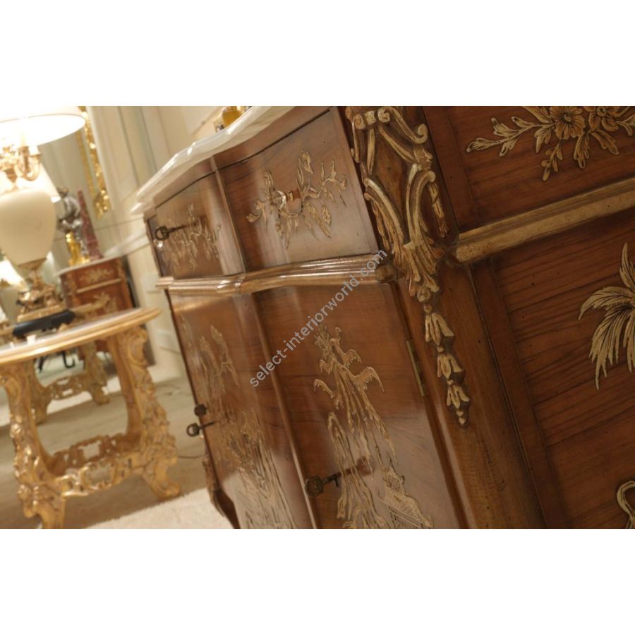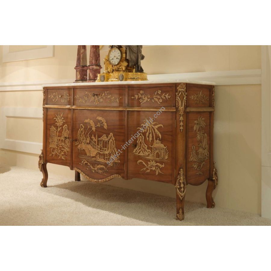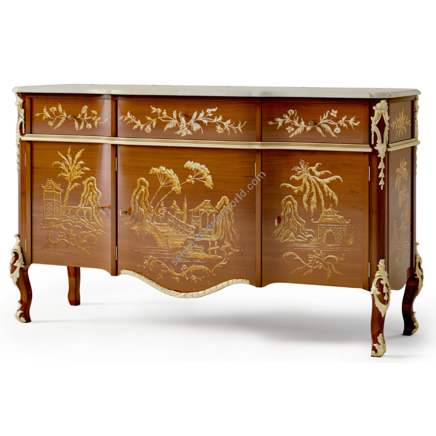 Refined sideboard with marble top enriched by remarkable silver decorations. B/4630 is a classic furnishing accessory made with fine materials whose versatility allows it to have a great positive effect on the surrounding environment.