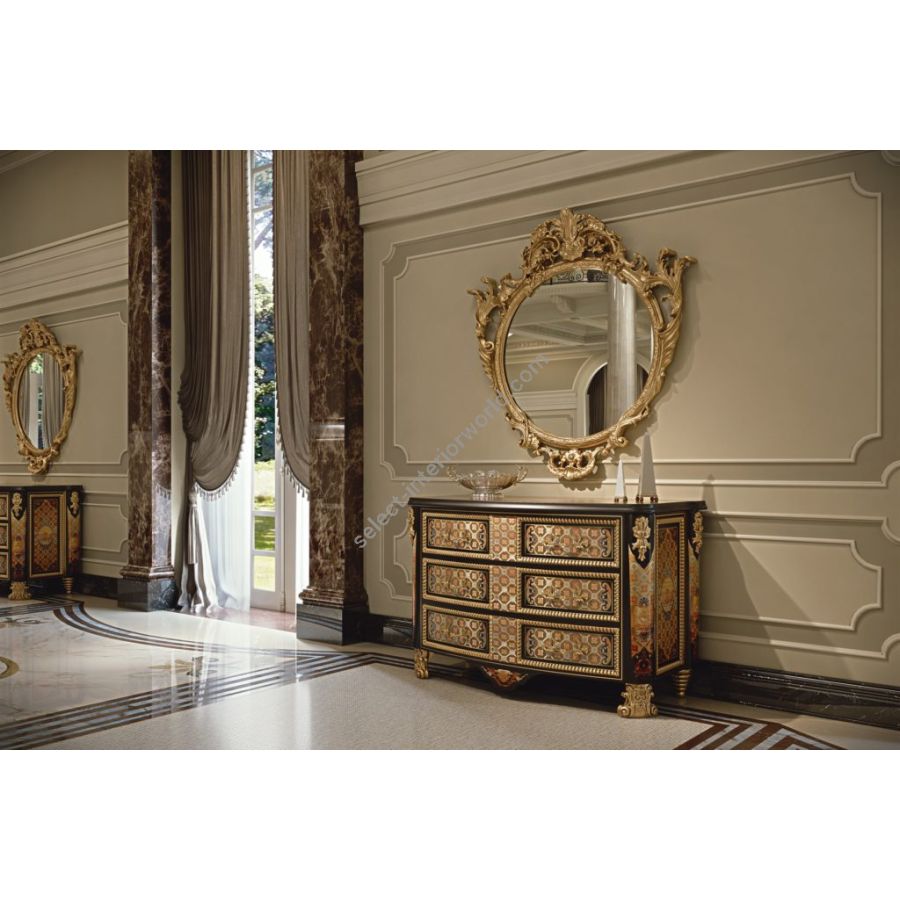 W020 is a majestic piece of furniture characterized by the brilliant polychromy of the inlay and enhanced by golden elements on a contrasting ebony background. W020 is the result of research and tradition, its style embodies the true spirit of high-quality classic furniture. Finished with fine materials based on ancient artisan techniques handed down over the years from father to son.