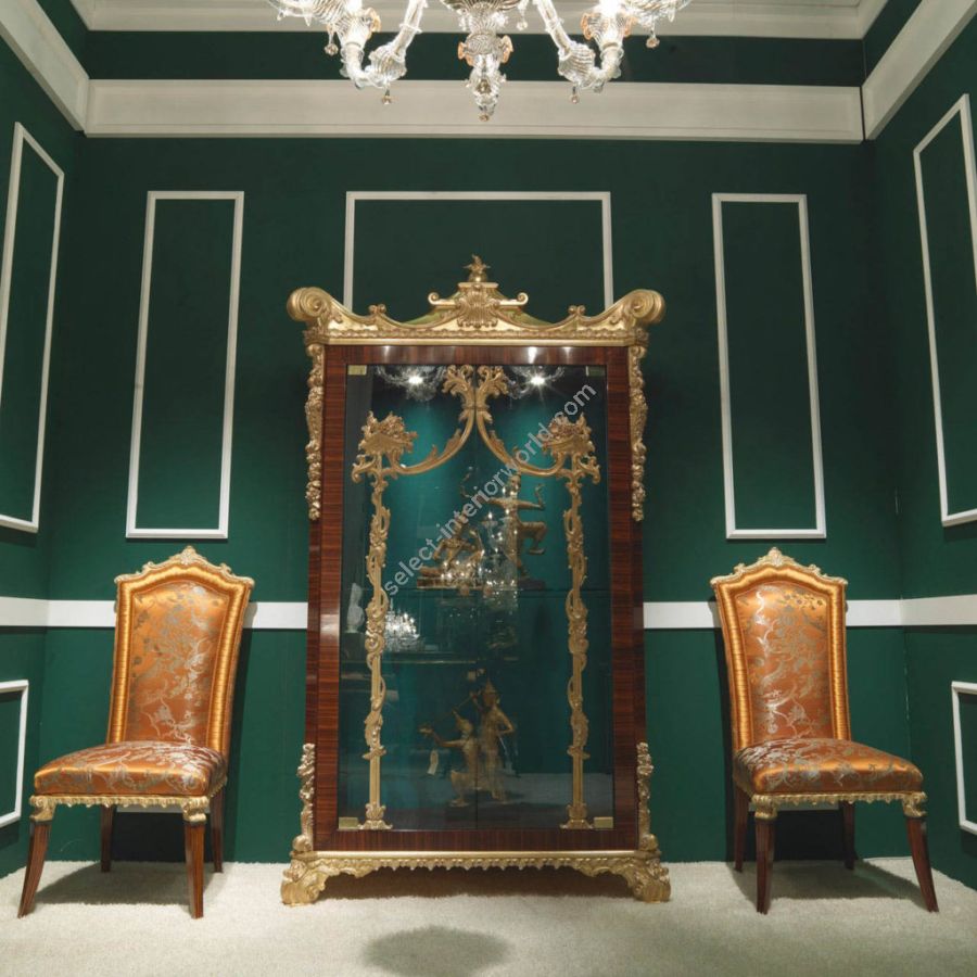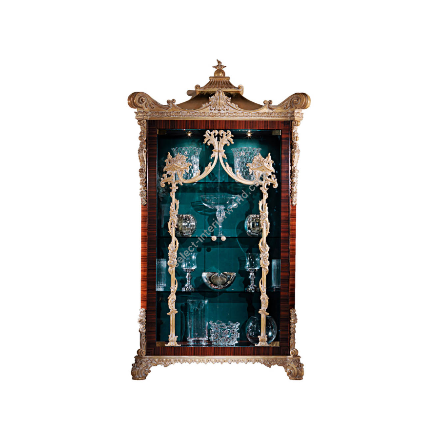Solid display cabinet in classic style enriched by important decorative details handcrafted. Its beauty is the result of research and tradition, from its style emerges the true spirit of high quality classic furniture, finished with fine materials based on ancient artisan techniques handed down over the years from father to son.