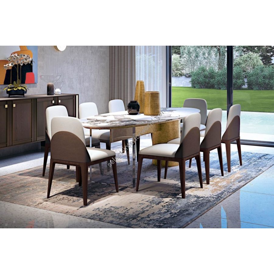 TWEET is a modern design chair with padded seat and backrest and external covering of the double backrest in leather. Its silhouette is overall soft and harmonious, its rounded lines and rounded corners mean that it can be pleasantly used in different contexts, domestic and office.