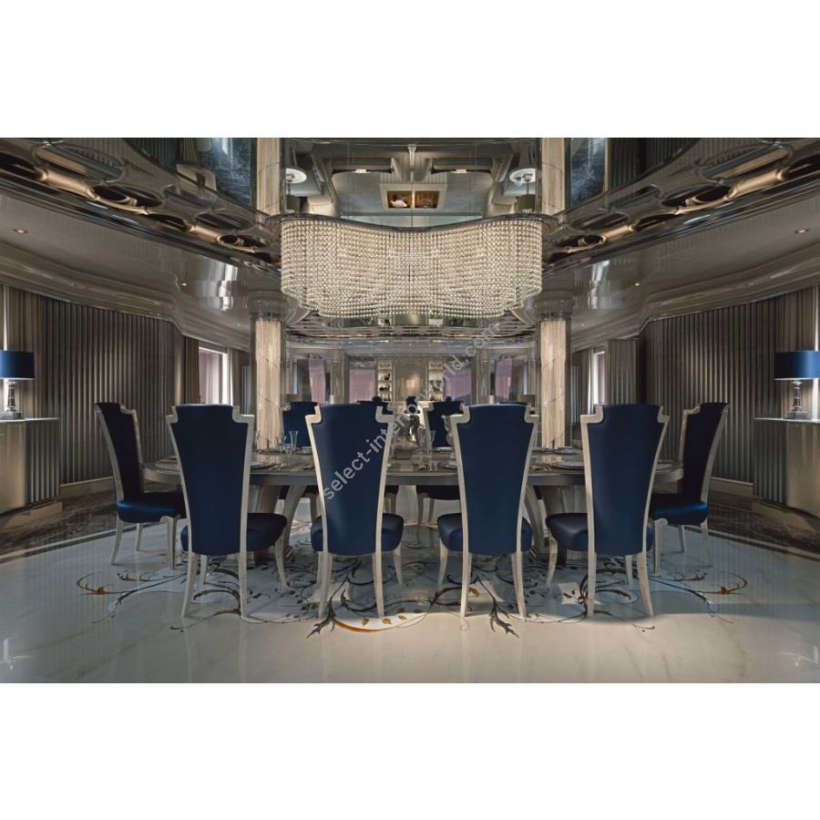 Chair with a unique and exclusive design, protagonist of a luxurious and refined elegance, fruit of the skilled work of master craftsmen who pass down the secrets of their craftsmanship from generation to generation. Its style represents a vision: the art of living through furniture and accessories in which design, style, material, new workmanship create new aesthetic codes.