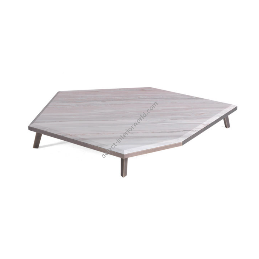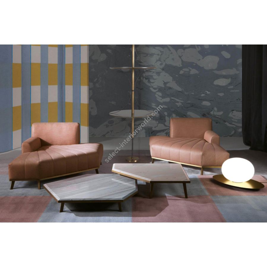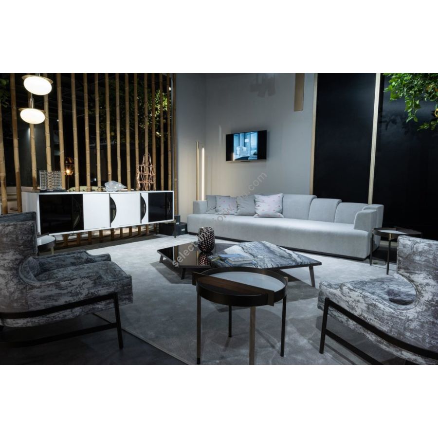 This set of coffee tables, with their distinctive refinement and combination of materials, is a unique accent for modern furnishings. The EXPANDING coffee tables are a captivating play of refined elements and textures. EXPANDING are made up of a bronzed metal structure covered with a marble top. The refinement of their design and the materials used allow them to coexist in different settings.