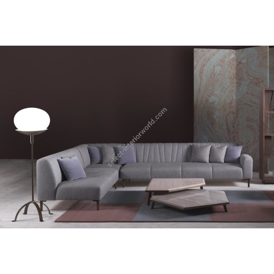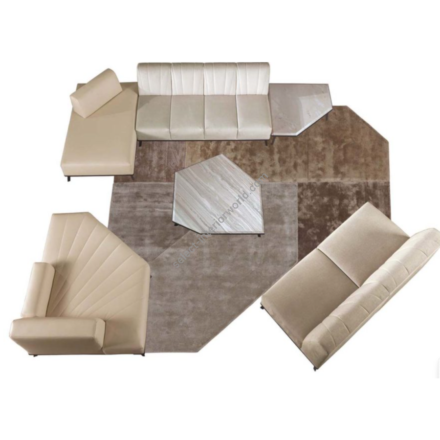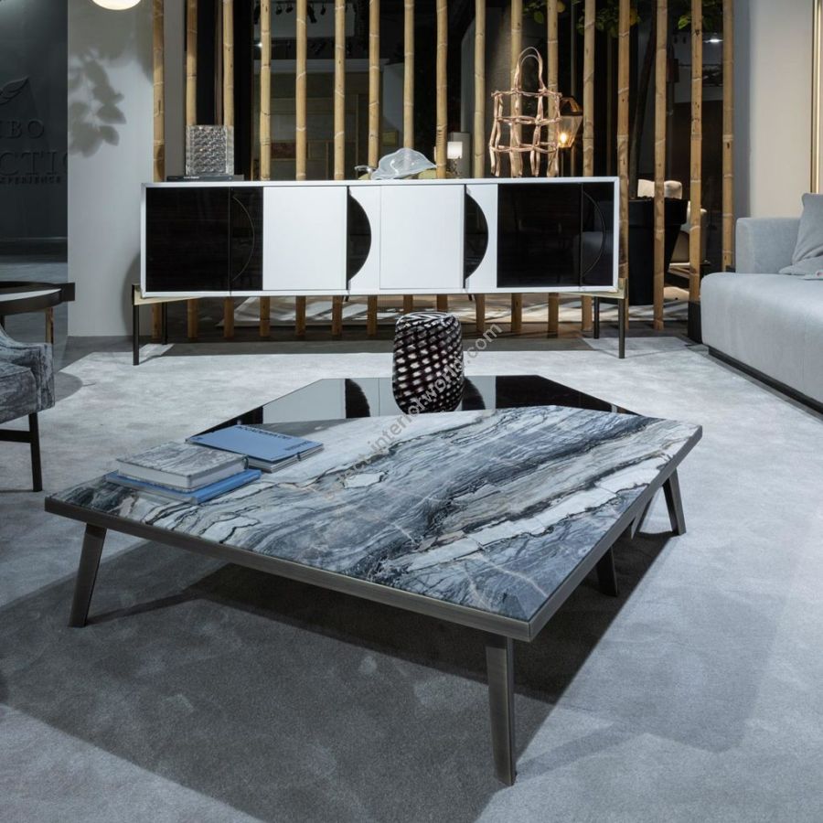 Refined set of coffee tables with marble top composed of a low table cm. 120 x 110 x h.17.5 and a high table cm. 100 x 90 x h.26. Also available in the eucalyptus wood version. The elegance of their design and materials makes the EXPANDING coffee table set a functional and elegant product. Their apparent simplicity hides their great design complexity. The EXPANDING coffee table set was designed to complete the modular seating set of the same name.