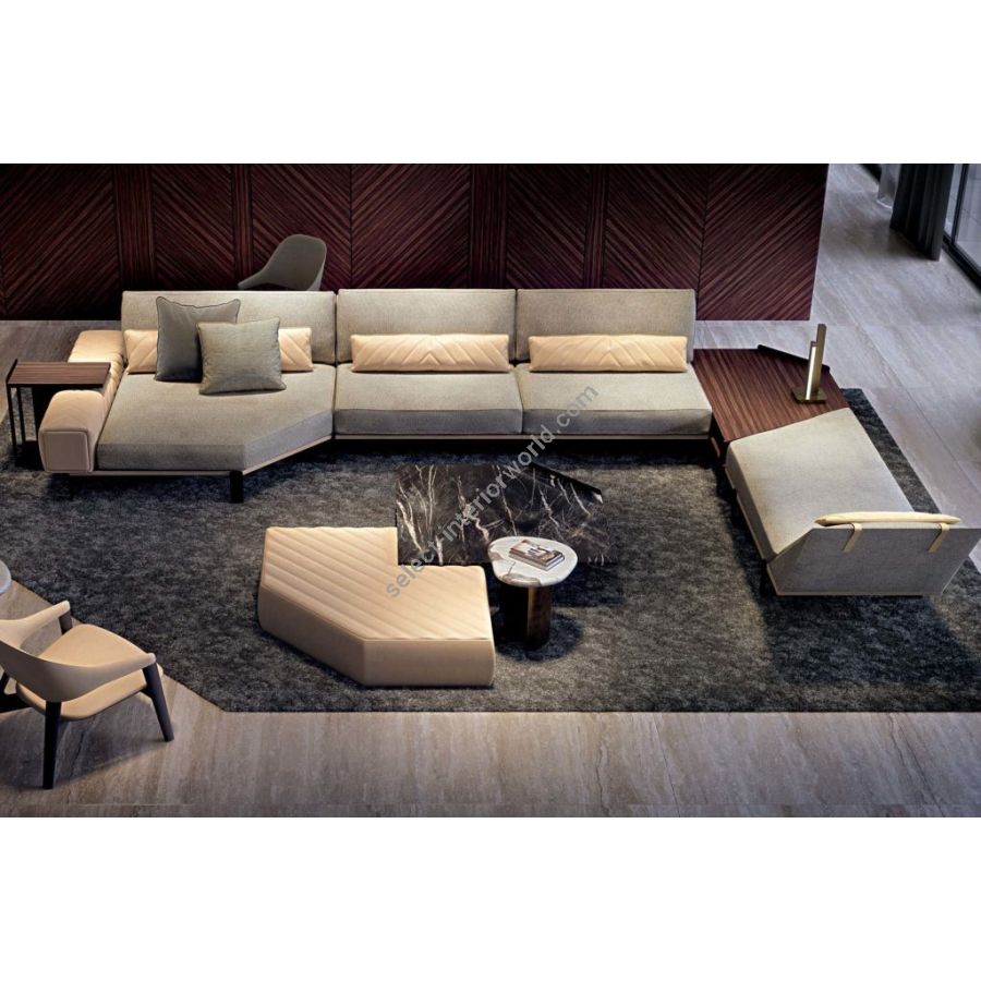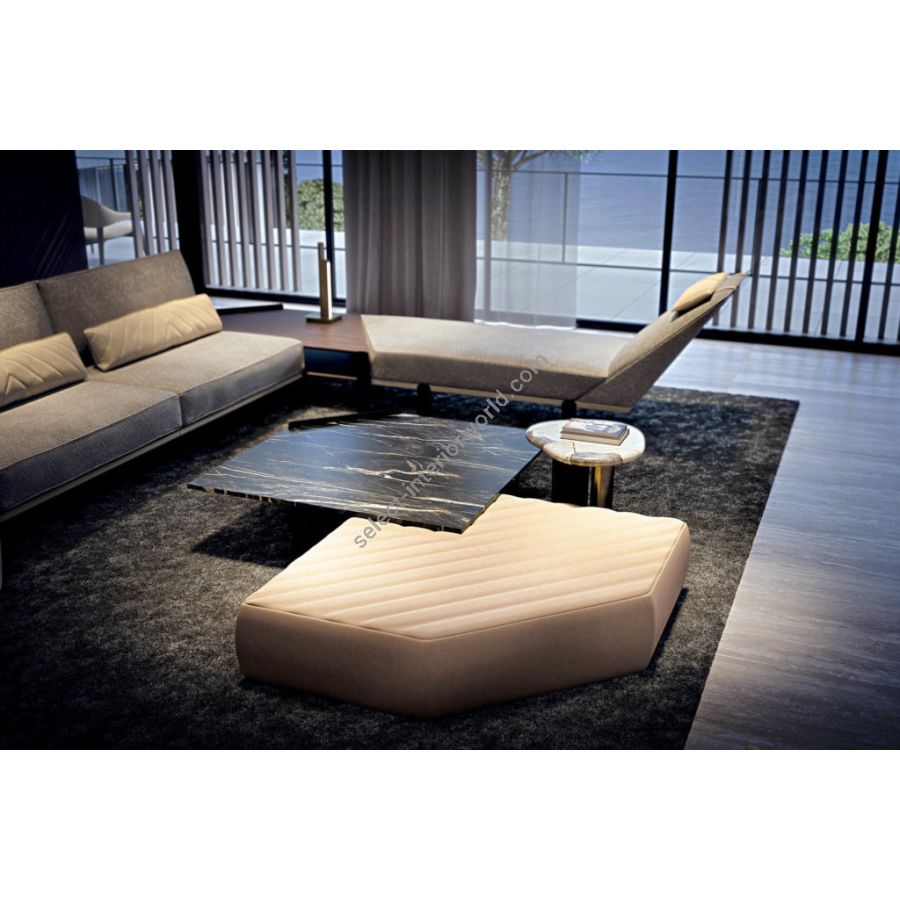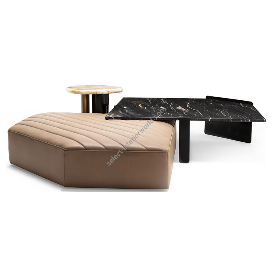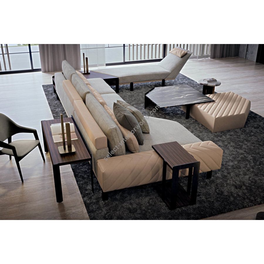 Elegant living room furniture composition composed of a side table 61 x 37 x h. 62 cm, a large table 120 x 120 x h. 38 cm, a small table 80 x 80 x h. 35 cm and a desk 140 x 48 x h. 60 cm. In the photo the ANDRES set is combined with the FREDDY modular sofa. The ANDRES coffee table set is characterised by an unparalleled design resulting from research and tradition, from whose style emerges the true spirit of high quality furniture.