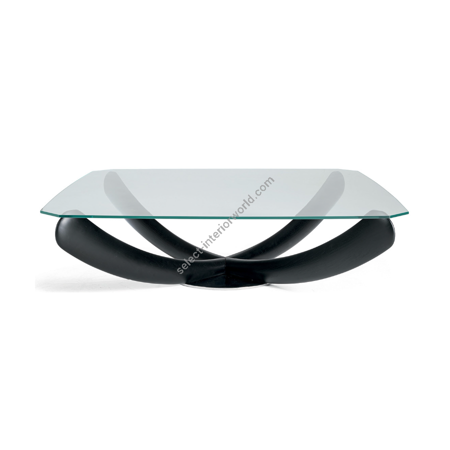 The modern coffee table ELICA is an exclusive design complement that represents the values of the modern ZANABONI collection. The four wooden legs with rounded shapes that support the support shelf, start from a common central point of origin that rests on a metal base, and reaches the four rounded corners of the glass shelf.