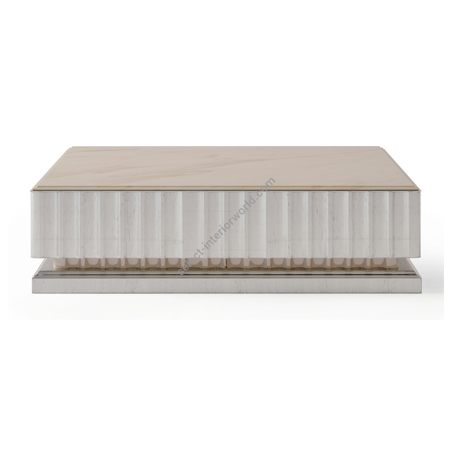 Elegant contemporary style rectangular coffee table with chrome base and marble top. A unique and innovative complement 100% made in Italy; a unique and exclusive timeless work protagonist of a luxurious and refined elegance, the result of the skilled work of master craftsmen who pass down the secrets of artisan workmanship from generation to generation.