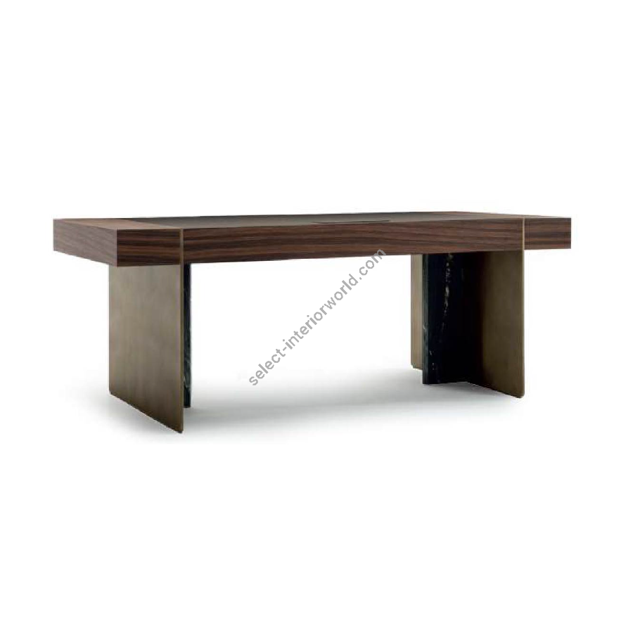 Elegant CGB422 striped rosewood desk featuring sophisticated TL09 gold-finish metal details with MR42 Belvedere marble inserts and leather top.