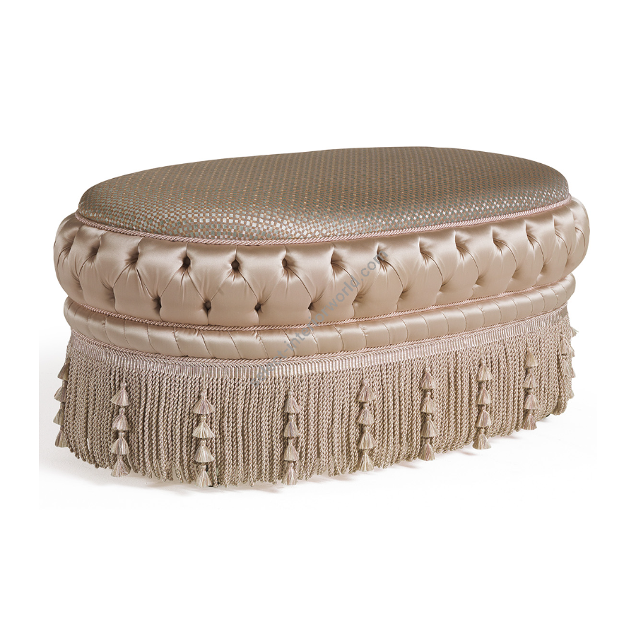 Elegant capitonné pouf with fringes. Its comfortable appearance and the width of its seat guarantee comfort and adaptability to different environments. The RODOLFO pouf can be used as an extra seat or to meet any need for layout and intended use.