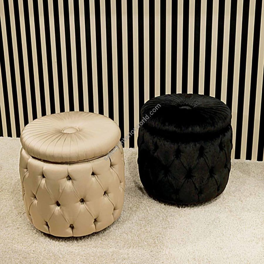 Elegant pouf with capitonné covering . ROLLER CAPITONNÉ can be combined with the W048/DR dressing table and used as a seat or as a complement in an entrance or in any other room.