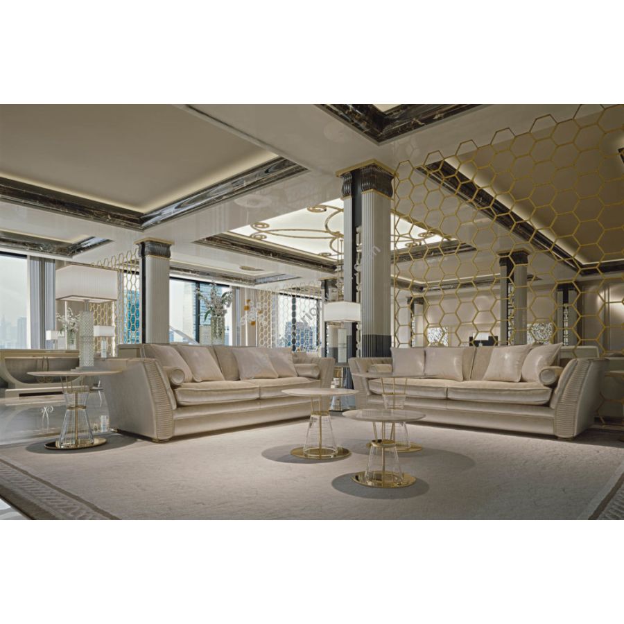 Sofa with a harmonious design characterized by elegant pleats made by hand. Its workmanship according to the Brianza tradition gives it a unique and personal touch. This sofa is also available in the version with capitonné base: CAPRI sofa.