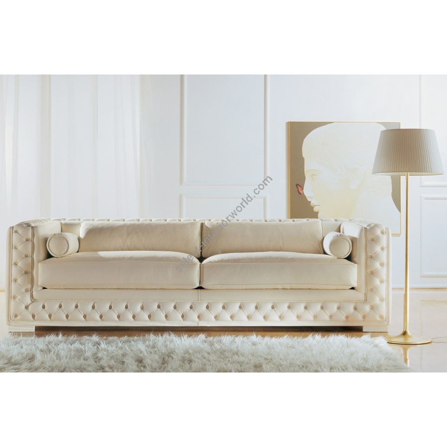 Elegant designer sofa characterized by square shapes and capitonné style covering on the entire external frame of the armrests and backrest. A timeless classic with extraordinary versatility. The great refinement of this complement allows it to coexist in harmony with complements belonging to other styles. With the ATLANTIQUE sofa it is possible to compose personalized compositions.