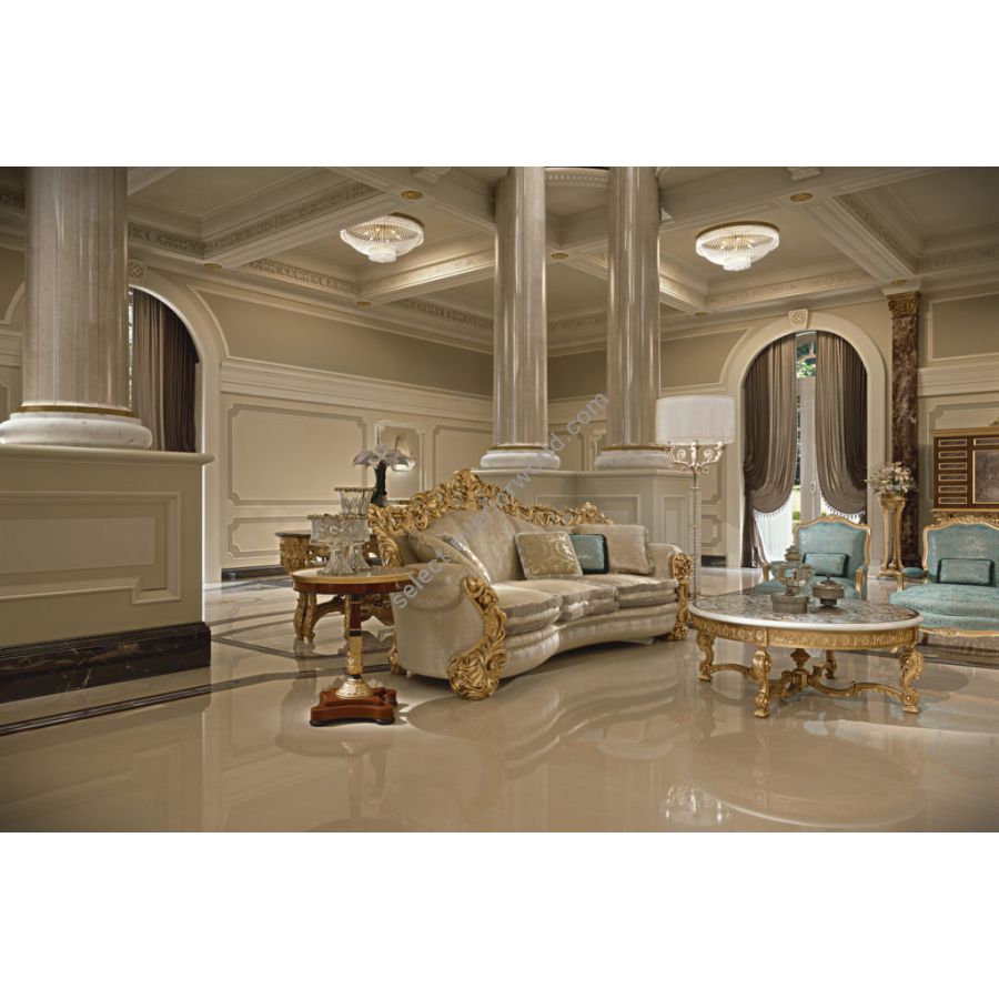 The distinctive elements of the classic living room LEONARDO are mainly found in its sinuous shapes. Its fabulous carvings are all made in a single piece of solid wood. The LEONARDO sofa is finished with fine materials based on ancient artisan techniques handed down over the years from generation to generation. LEONARDO is a beautiful traditional sofa dressed with combinations of absolute elegance to which the artisan workmanship according to the Brianza tradition gives a unique and personal touch.