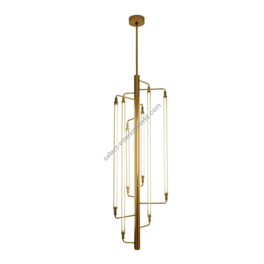 Set consisting of a wall lamp, lamp and chandelier in modern style in brass with a satin gold finish. The elegant and refined design of the diffuser allows these elements to adapt to any type of context.