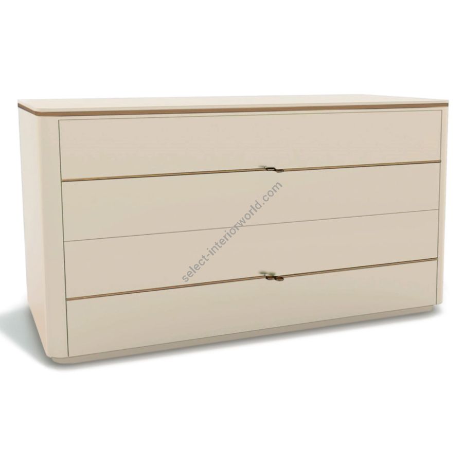 Lacquered chest of drawers complete with four large drawers with precious bronzed brass details. Its modern and sophisticated design is the result of the combination of the use of innovative techniques in the production of high quality accessories, high technology in design and ancient Italian tradition.