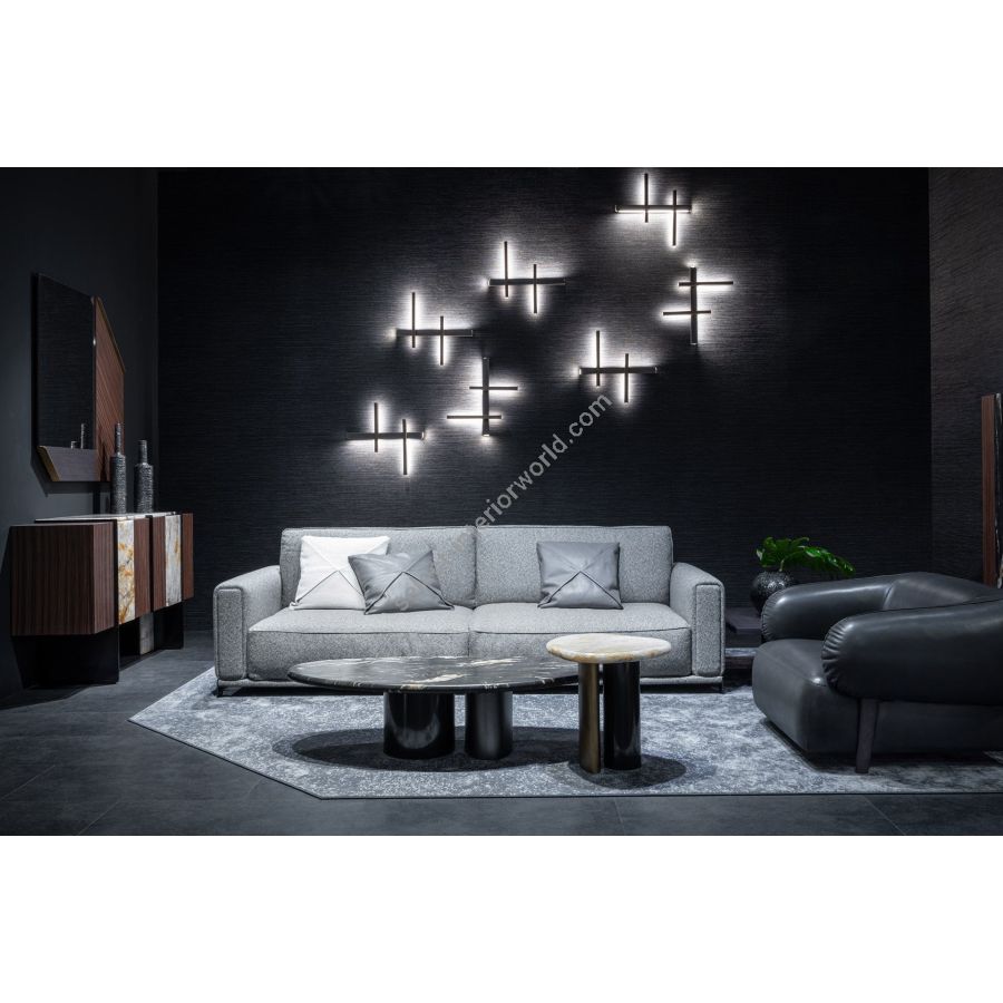 VEGA is a set of modern style metal lamps with a bronze finish that consists of a chandelier, a table lamp and a wall lamp. Their great versatility allows them to coexist with very different settings without losing their characteristic charm.