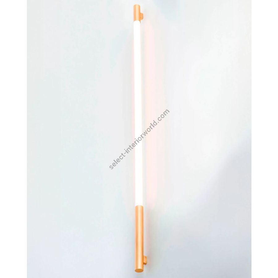 Cosima is a beam of light that defines spaces with its minimalist lines. Made from opaline plexiglass, the tube features brass or painted metal ends. A highly versatile lamp, it encourages the designer's creativity. Cosima can be used individually or arranged in customized compositions on walls, and can even be imagined as dramatic suspended installations, perfect for large spaces.