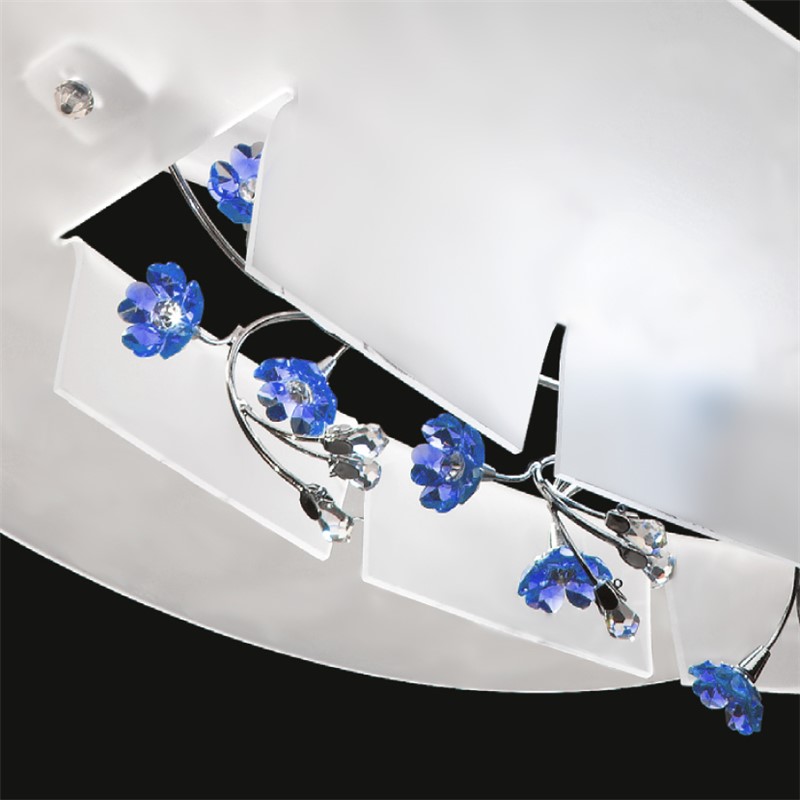 Ceiling lamp made of thermoformed glass decorated as per a cracked glass and with a multicolour crystal floral branch.