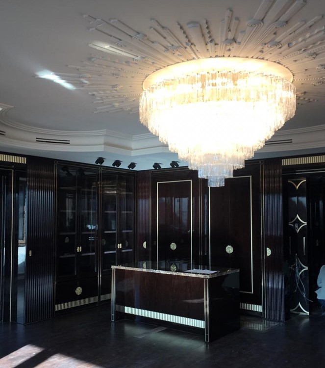 A chandelier with a modern design and with bark-like murano glass processing, ideal for elegant and refined environments. Find out more, go to the website!