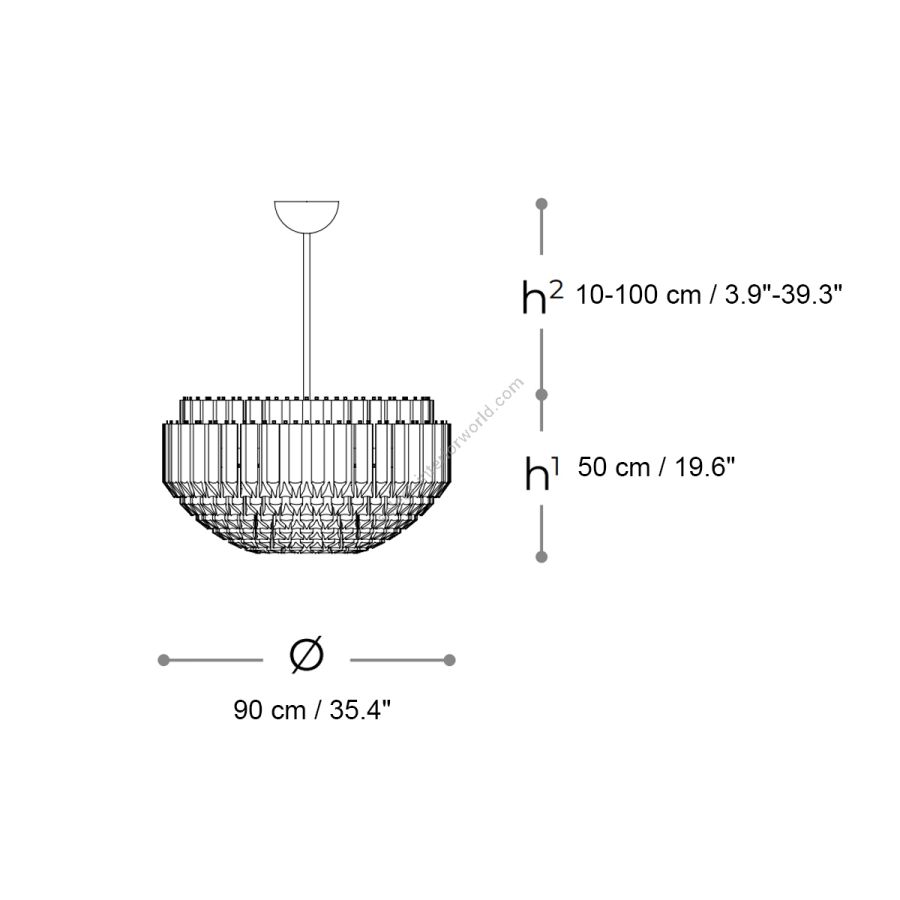 Details: H1 - adjustable cable length 10-100 cm / 3.9" - 39.3", H2 - pendant height without cable 50 cm / 19.6"