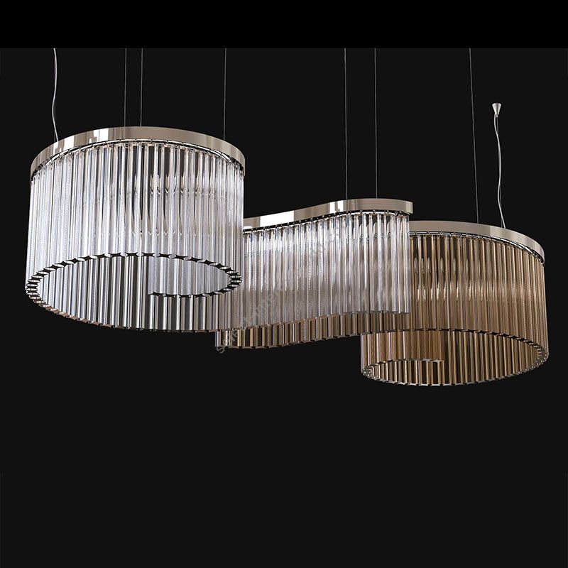 Carmen is a collection that gives a creative and contemporary twist to the classic chandelier. Simple in its structure Carmen is a jewel lamp composed of a minimal metal frame in chrome finish to which have been combined rows of quadrihedra in transparent Murano glass or teak that filter the light coming from the perimeter source with an effect suggestive reminiscent of a waterfall.