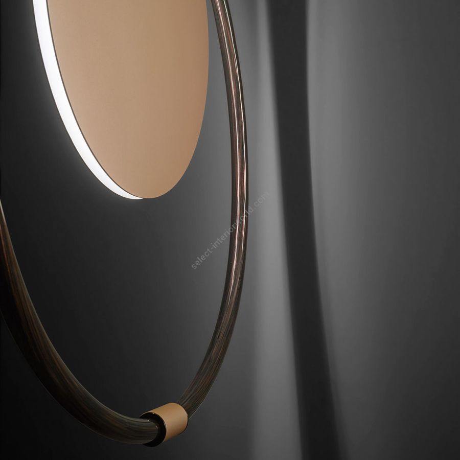 Suspension lamp composed of a tubular circle in black artistic glass with "avventurina" pigment. Internal metal disk with matte champagne and matte bronze finish.