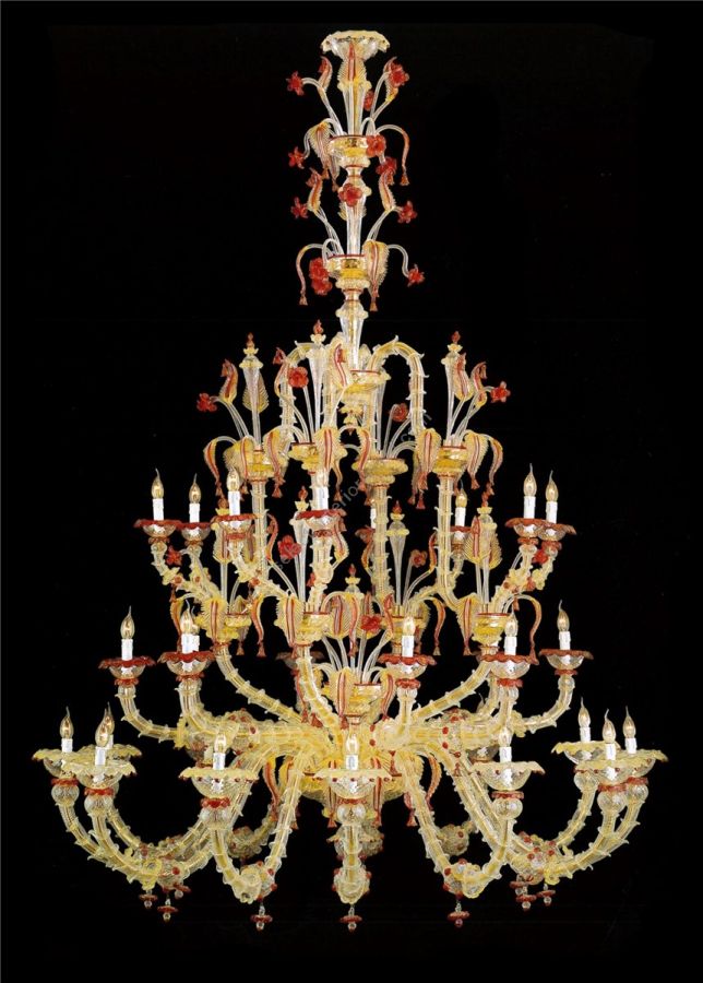 - Italian Luxury Lighting / Chandeliers / Venetian Glass Gold And Red 20-Light V6003 020