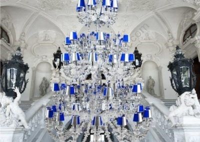 Italian Luxury Lighting / Chandeliers / Venetian Glass White and Blue 54-Light V8047 054