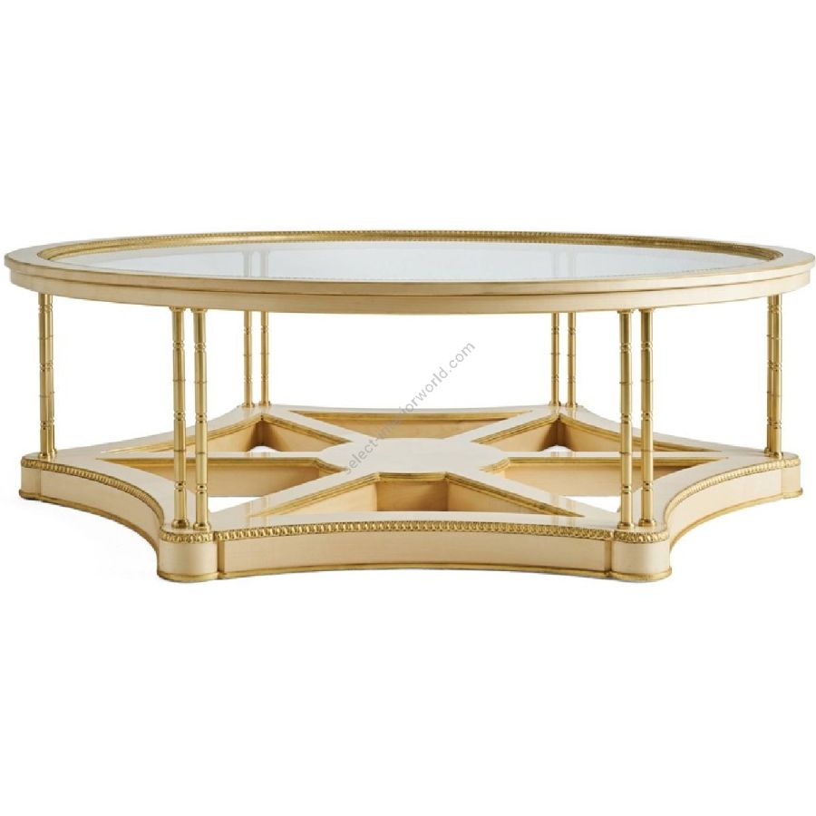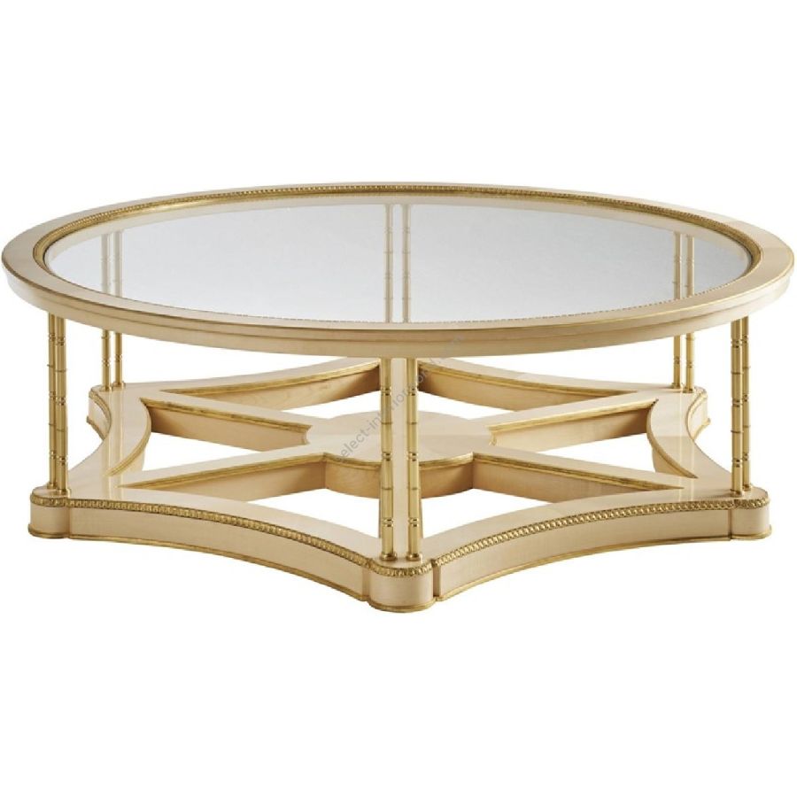 An elegant and refined classic-style coffee table, Belle Vie boasts an eclectic and versatile charm, allowing it to furnish environments with a diversified style, making them unique and special. Characterized by a fris maple structure enriched by gold leaf details, the coffee table is equipped with legs in polished brass with a bamboo effect finish. The transparent glass top lightens the whole, lending it a light and discreet charm.