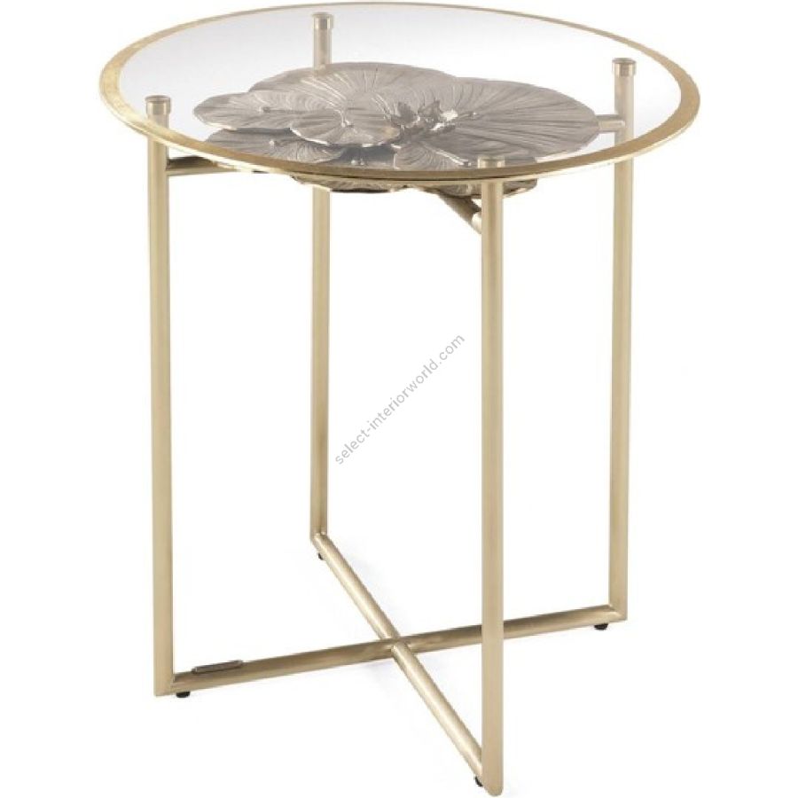 The beauty of nature is transformed into a sophisticated decorative element in Monet table: a scenographic piece of furniture where the lotus leaf motif in hand-chiselled brass casting is the element of wonder, a connection with one of the most elegant flowers.