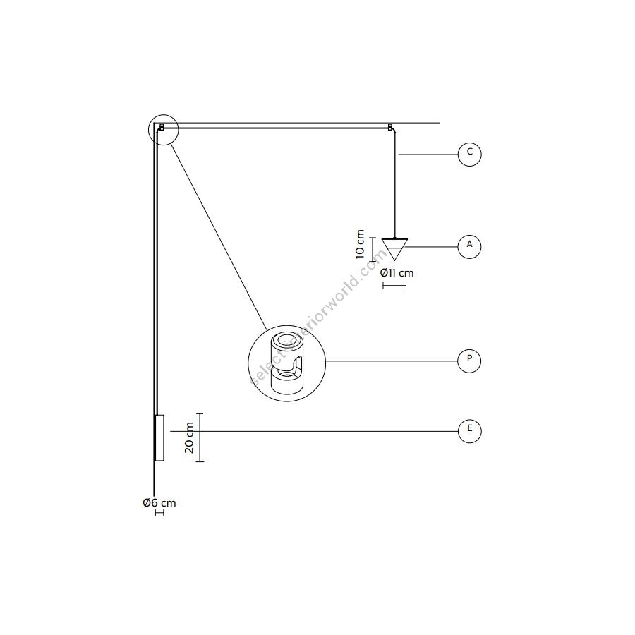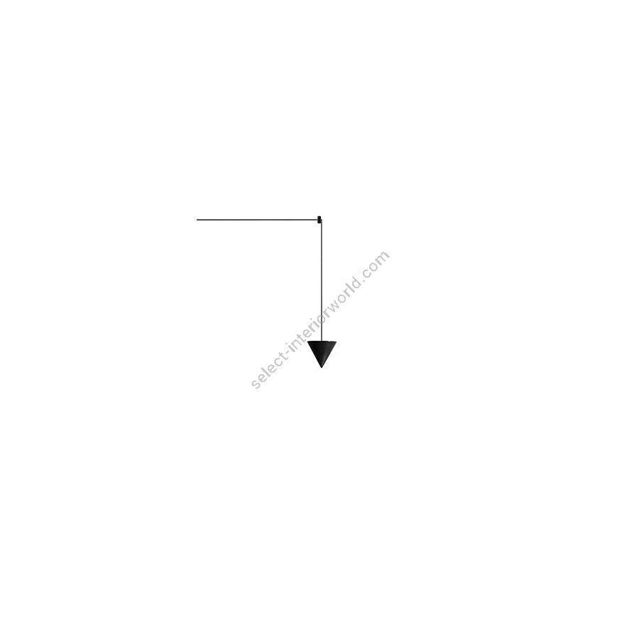 The cone diffuser is the starting point for climbing ceilings and walls, and can be suspended at various heights thanks to long thin cables that allow for different refined combinations. The cable can hold even two cone bodies that diffuse the light, one smaller with the beam pointing down and the other one, larger, pointing up, distanced as needed and attached to the ceiling or wall with special black aluminum clamp.