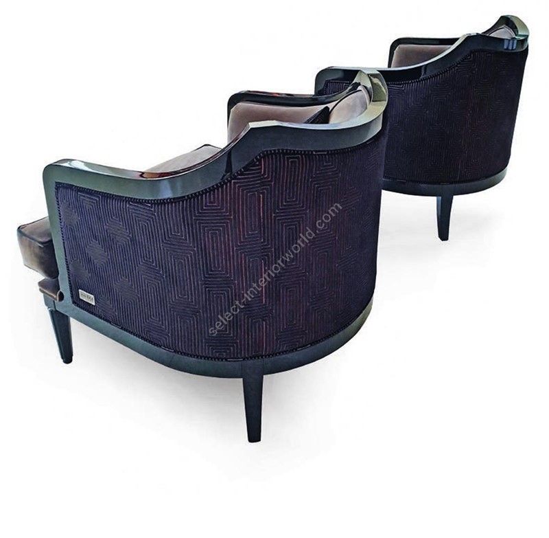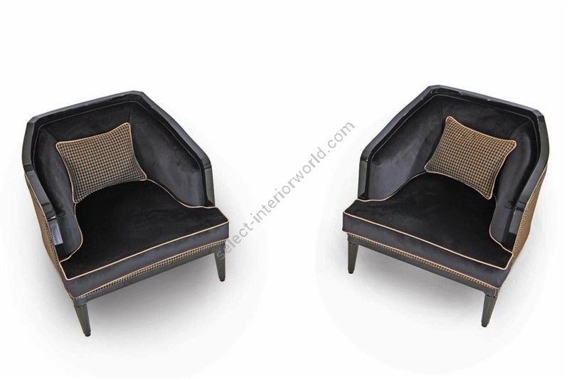 Armchair with fir wooden structure made of hand-engraved and hand-scribed. A padding made from non-deformable polyurethane foam. A decorative cushion padded with goose feather. Seat cushion in goose feather and spring with reversible super soft system. Finishing with gold or silver leaf on request with additional price according a price list. For a quilting on the external backrest, please consider the increase according a price list.