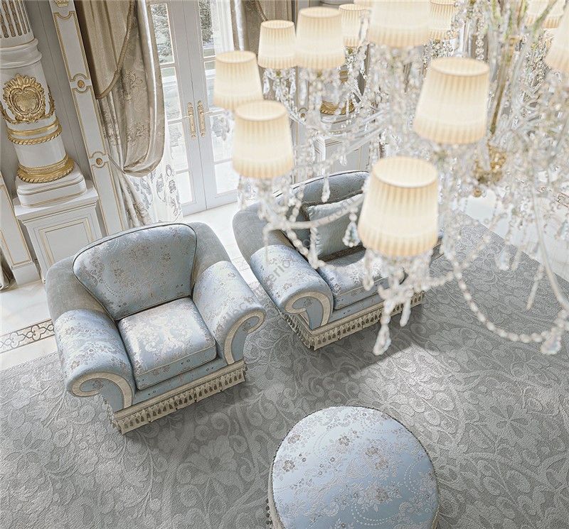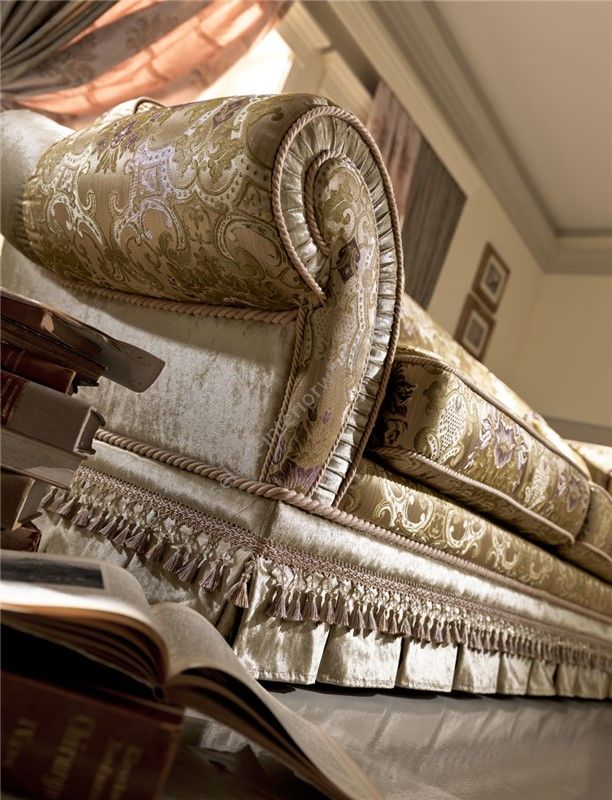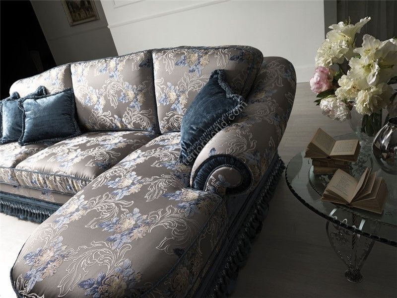 Its harmonious and pure line, free of any extrinsic complexities, where matching, the sinuous spirals and linear shapes are the result of the careful and thorough research that give it a unique and inimitable imprint. The original fabrics and colour matching embellish the Chaise Longue, like an opera where lyrics and melody are harmoniously mingled with counterpoints and effects.