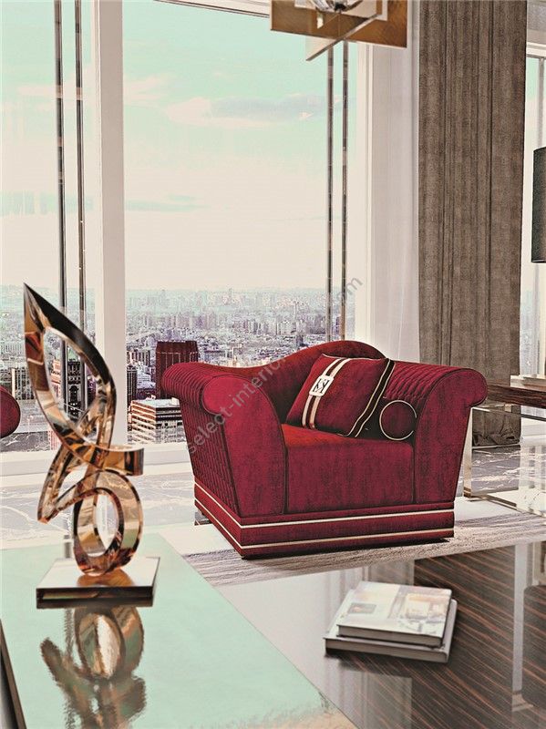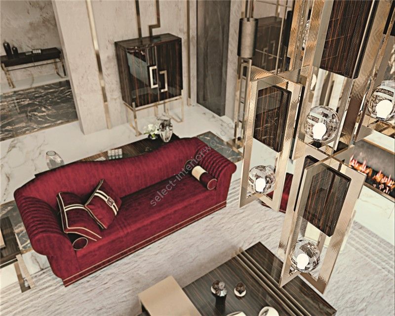 Sofa with partially removable coverings, structure in fir wood, multilayer of poplar and beech inserts. Padding made from non –deformable polyurethane with different levels of density. Seat cushion with springs and Soft System type. The overlapped feather backrests are standard. A steel brushed base is standard. Instead , for different metal finishes ,please consider the increase according a price list. Quilting is available on the external backrest of the sofa and on the sides of armrests with an extra charge.
