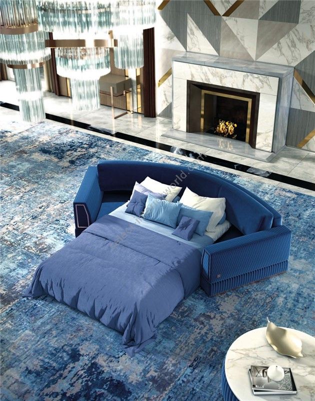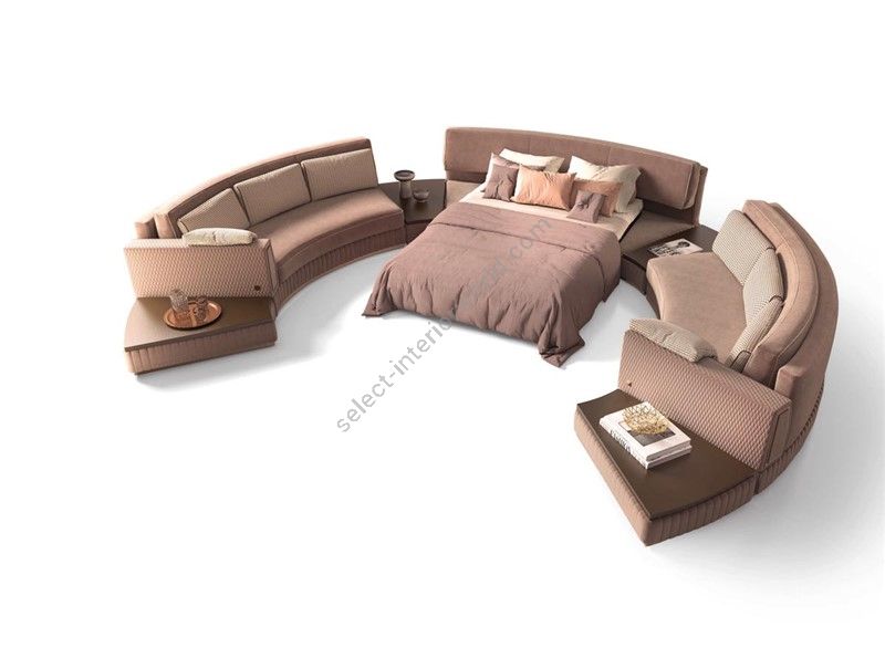Sofa with a partially removable covering in fabric version. Structure in fir wood and poplar multi-layer. Padding made from non-deformable polyurethane foam with different levels of density. Seat cushion with springs and SOFTSYSTEM technology . The base and the steel front panels are standard. Instead, for different metal finishes, please consider the increase according a price list. This model is available with bed mechanism , with mattress of 11 cm in non-deformable high-density polyurethane , covered with a removable and washable lining with aloe treatment. The quilted parts should be considered as an accessory and increased according a price list.