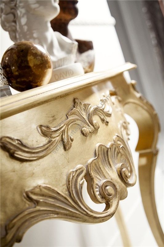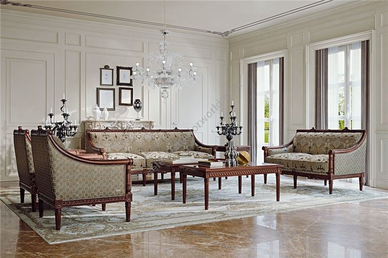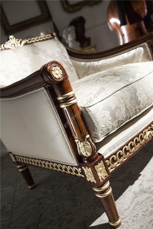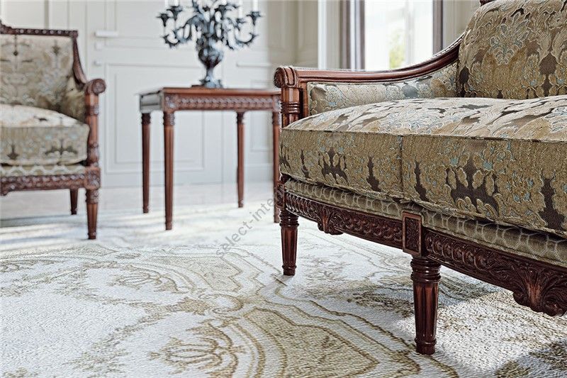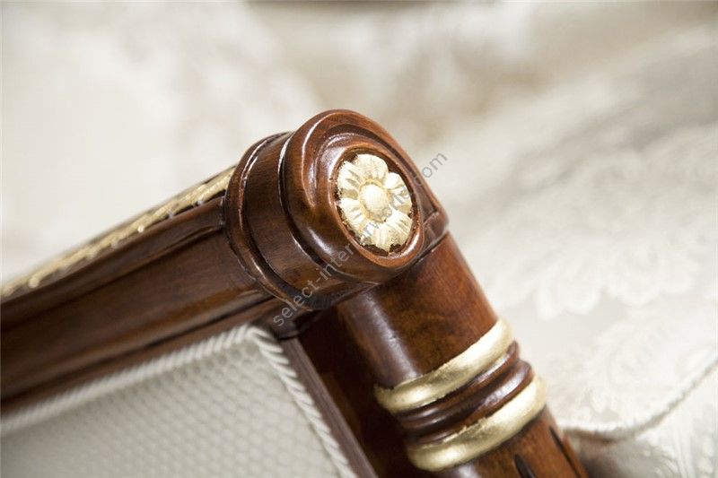 Sofa with a partially removable cover. The frame is made of beech wood with hand finished details. Polyurethane padding with different densities. Seat cushions with down filling, springs and SUPER-SOFT-SYSTEM. For gold and silver leaf finishing consider the extra price as per pricelist.