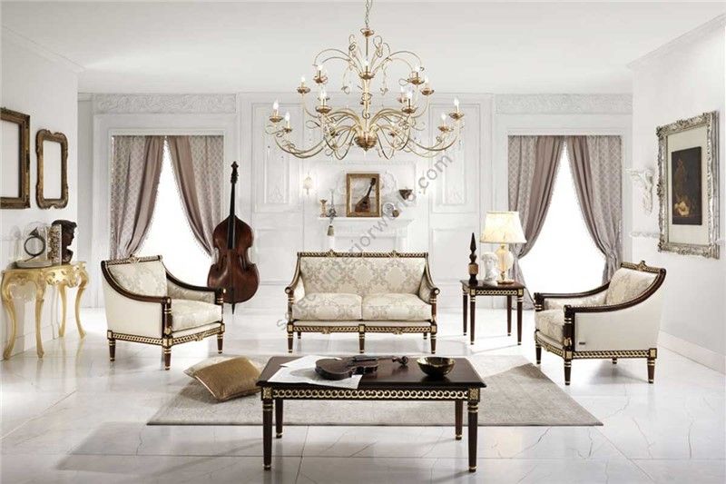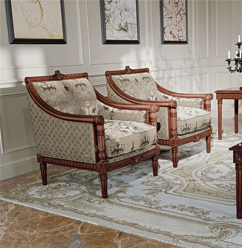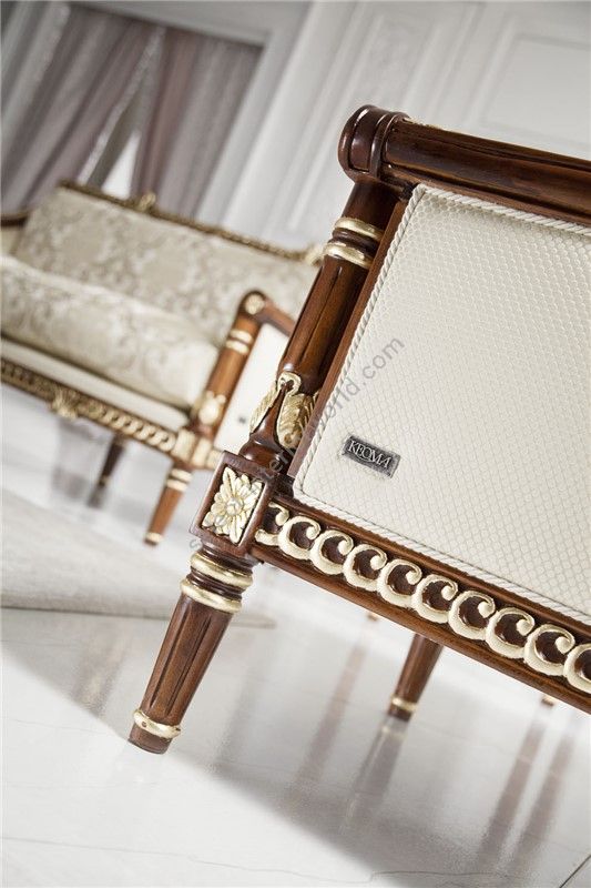 Collection of elegant small sofas and armchairs with classic architecture decorations enriched with precious inlay work, old leaves and beautiful fabrics that enchant everybody just like a charming, seductive and mysterious woman from the East wearing her wonderful dress can do.