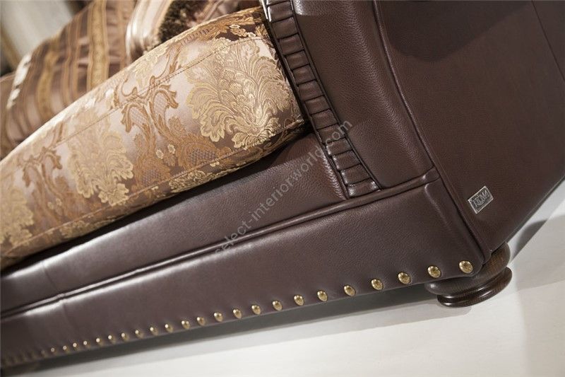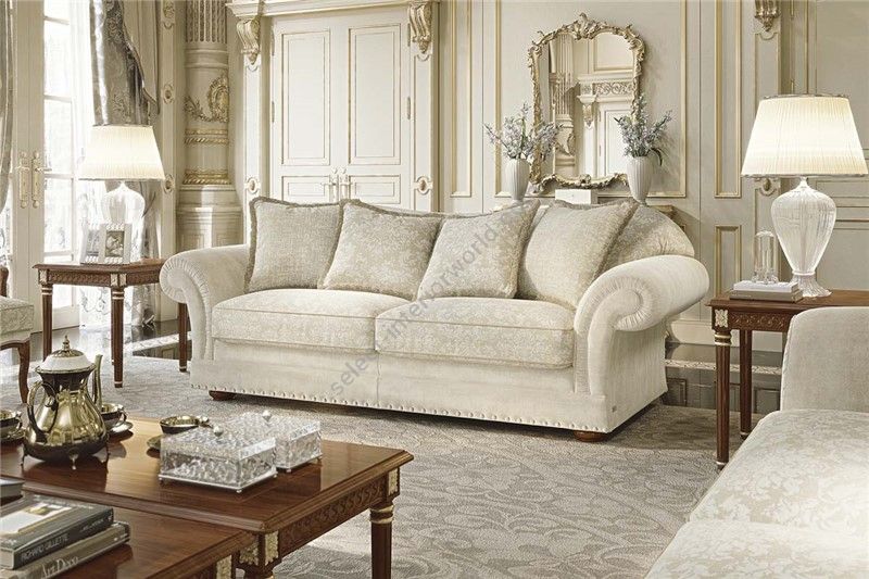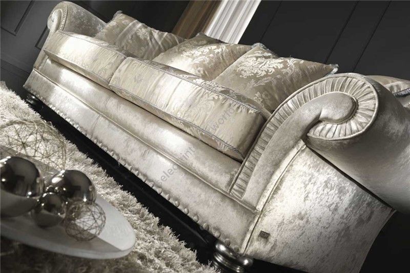 This is a sofa with a semi-covered seat, a rigid back and down cushions and backs. The frame is made of fir wood and multi-layer poplar which can be inspected by opening a zip underneath the sofa. The non-deformable polyurethane expanse padding is at differentiated quotas and there are spring seat cushions with SOFT-SYSTEM. It has beech wood feet. There is a bed version in the sofas with one electro-welded support. The H12 spring mattress is standard.