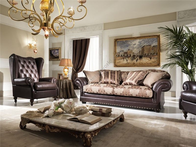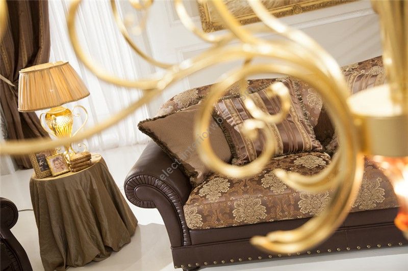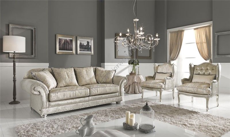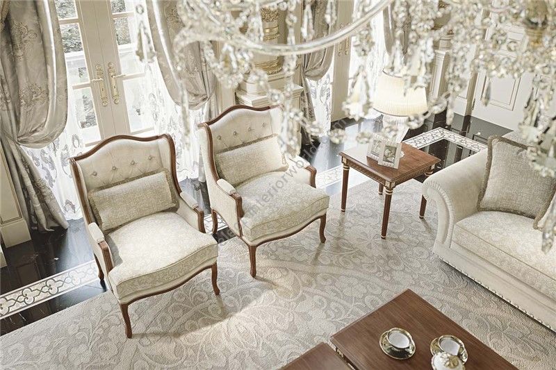 Its timeless classic line, its refined handmade details and elegant voluminous backrest, wide armrests and spirals in a fine plissé finish.