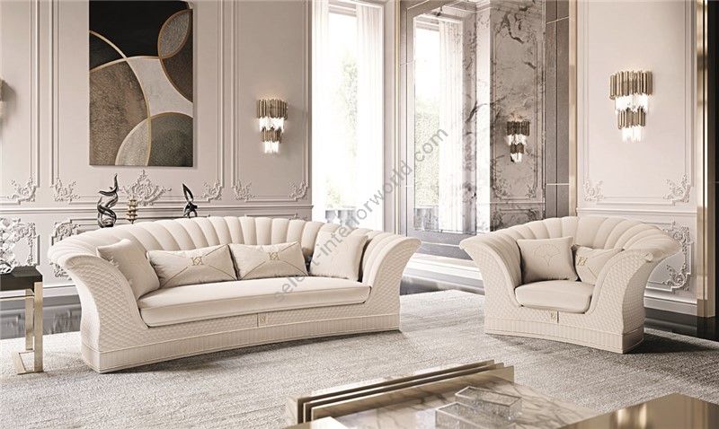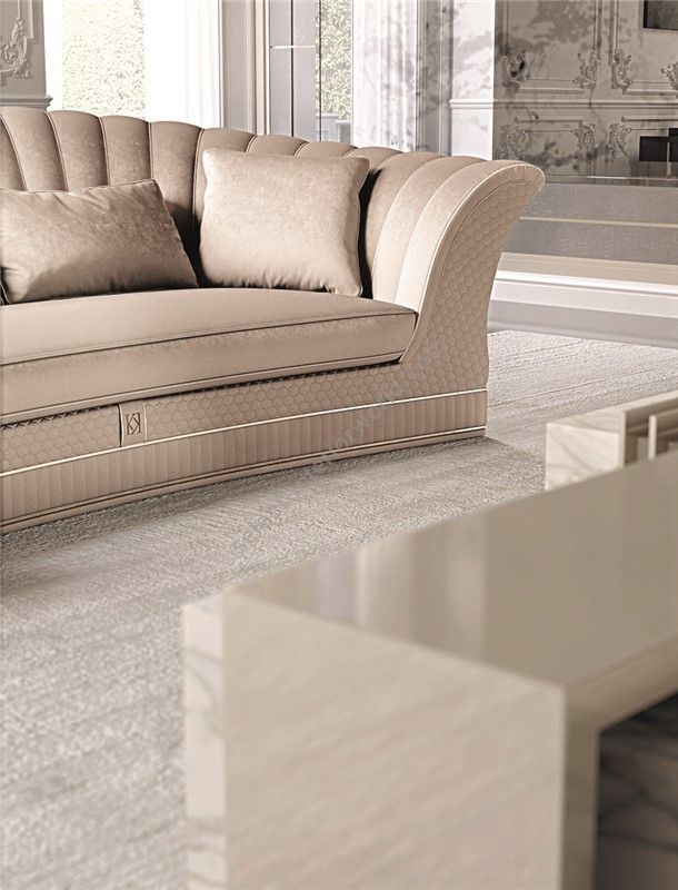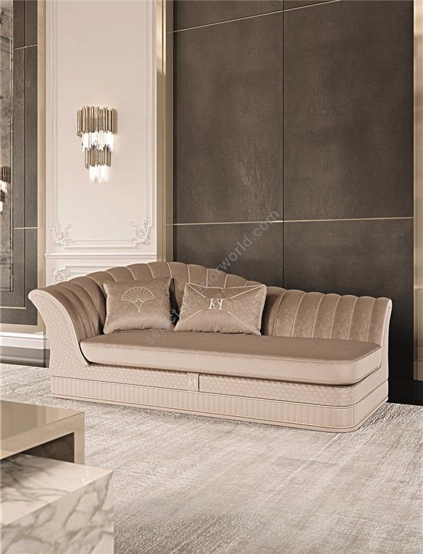 Sofa with partially removable covering . Structure in fir wood and poplar multi-layer. Seat cushion with springs and SOFT-SYSTEM technology. The padding made from non-deformable polyurethane foam in different densities. The backrests in feather. The steel base is standard. Instead, for the particular finishes, please consider the increase according a price list. This model is available with bed mechanism , with mattress of 11 cm in non-deformable high-density polyurethane , covered with a removable and washable lining with aloe treatment. The quilted parts should be considered as an accessory and increased according a price list.