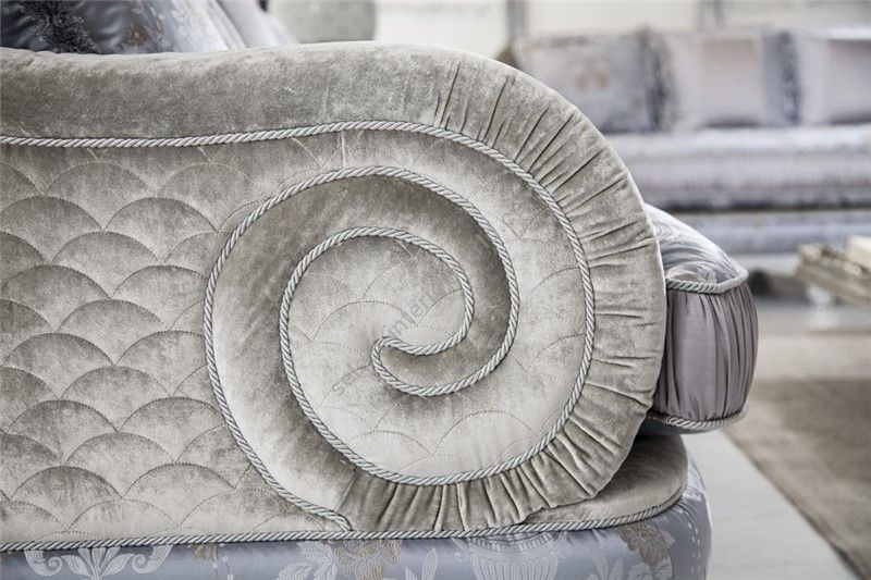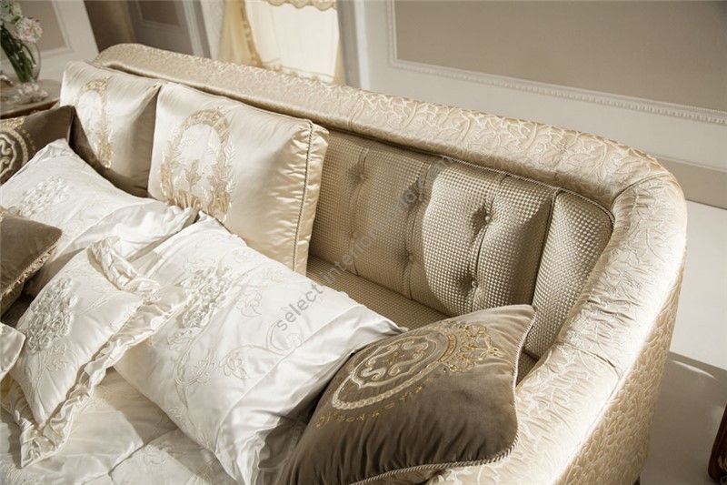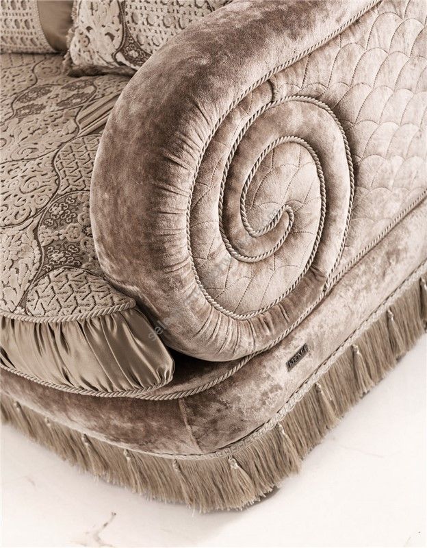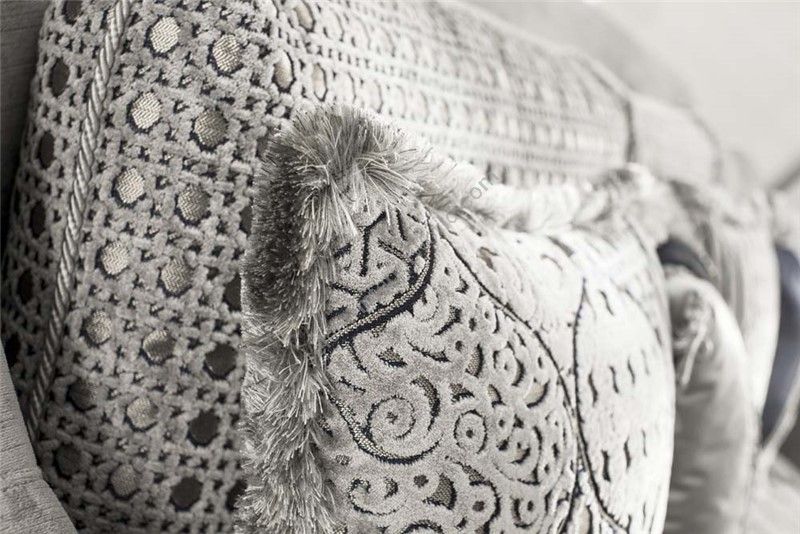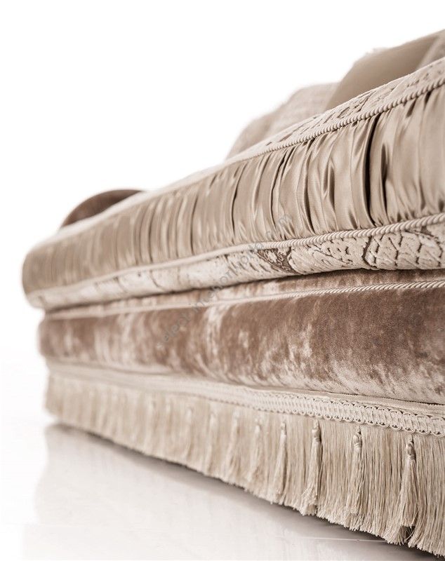 Sofa partially removable. Frame in fir, poplar plywood and beech inserts. Padding in polyurethane foam of different densities. Seat cushions in goose down and soft, with SUPER-SOFT-SYSTEM, reversible. Choice for the finishing of the toothbrush and umbilical classic. Leaf finish for an additional charge. This model is expected to bed version with only the welded series with mattress H 11 in highdensity polyurethane foam with 50 shell Aloe removable and washable.