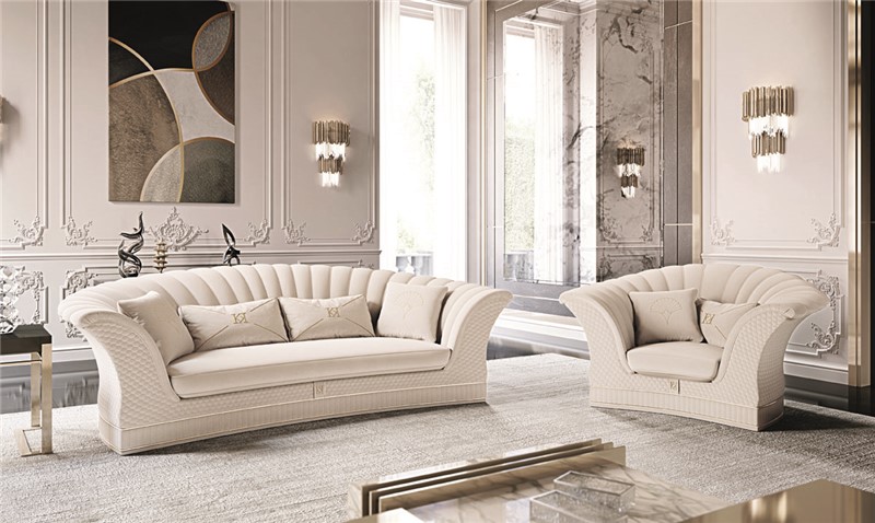 Sofa with partially removable covering . Structure in fir wood and poplar multi-layer. Seat cushion with springs and SOFT-SYSTEM technology. The padding made from non-deformable polyurethane foam in different densities. The backrests in feather. The steel base is standard. Instead, for the particular finishes, please consider the increase according a price list. This model is available with bed mechanism , with mattress of 11 cm in non-deformable high-density polyurethane , covered with a removable and washable lining with aloe treatment. The quilted parts should be considered as an accessory and increased according a price list.