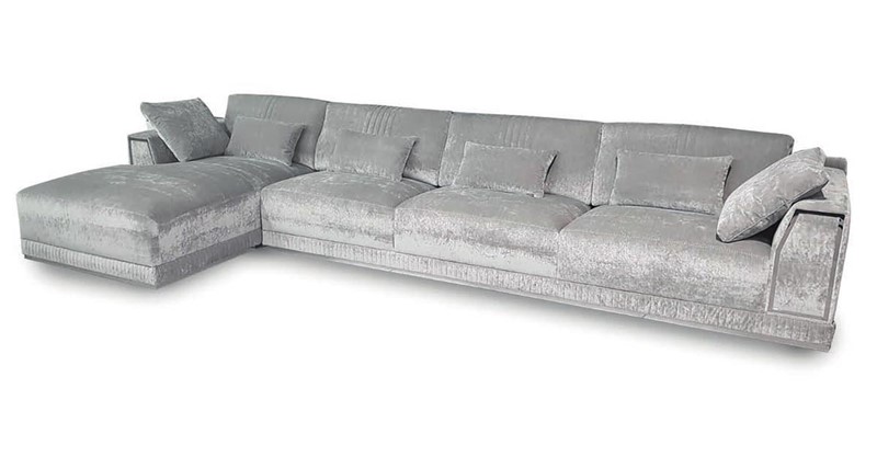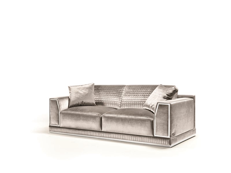 Sofa with partially removable coverings, in fabric and leather versions. Fir wood frame and poplar plywood can be inspected with a zip underneath the sofa. Non-deformable expanded polyurethane padding in different densities, seat cushion with SOFT SYSTEM type springs. The steel base and front metal inserts are standard. Instead, for particular finishes, please consider the increase according a price list. Backrest quilting can be ordered on request with an extra charge. Standard back cushions are padded with goose feathers.