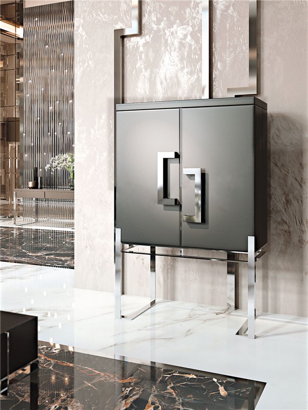 Technical description Struttura in listellare di abete impiallacciato in tranciato di ebano. Il rivestimento interno è in tranciato di Tanganica. Per finiture e colori diversi, visionare la cartella colori. La struttura in acciaio spazzolato opaco è di serie. Per finiture diverse considerare la maggiorazione come da listino. Data sheet