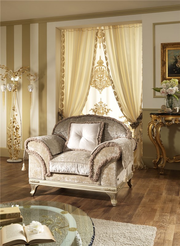 Harmony and sophistication match elegance and luxury in a collection of sofas, sofa-beds and armchairs boasting rich fabrics which are unique for their soft touch and warm shades embellished with classic floral motifs. Decorative features, bows, frills and skirts, all customize the whole in a harmony of fabrics, colours, refined and unique decorations.