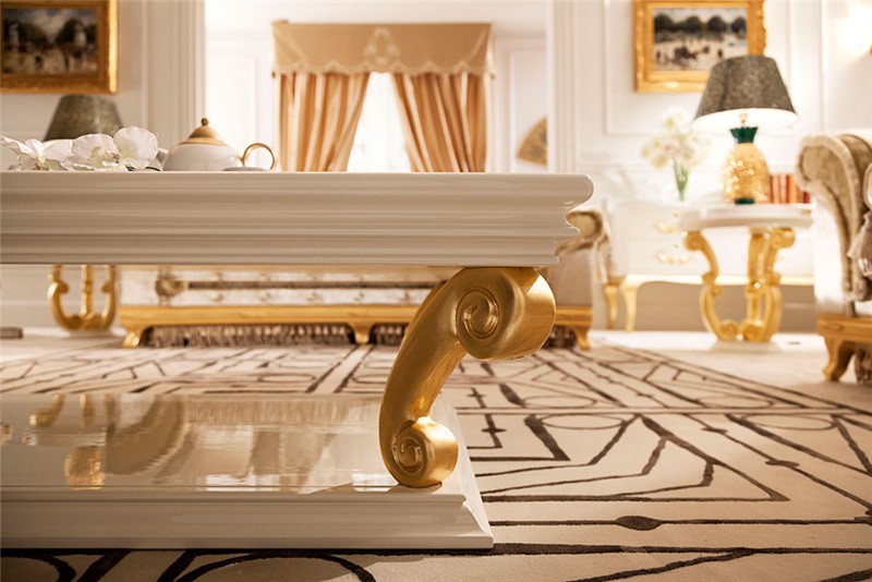 Sofa with a semiremovable seat covering. Fir wood and poplar multilayer structure. Non-deformable polyurethane foam upholstery with different densities. Reversible seat cuschions with down filling and SUPER-SOFT-SYSTEM springs. Armrest coverings, two upholstered cuschions and beechwood feet. Upon request cuschions and backrests adorned with fringed ribbon. Finish in gold or silver leaf with a choice of premium price. There is a bed version with one electro-welded standard support with H12 spring mattress.
