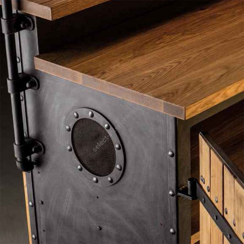 The counter table with lamp from the collection “Industrial 6” is made of high-quality metal and oiled oak.