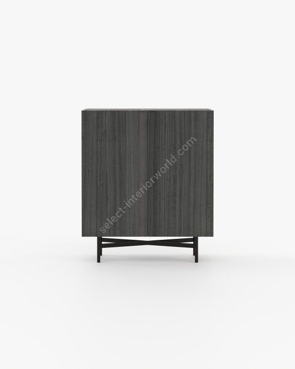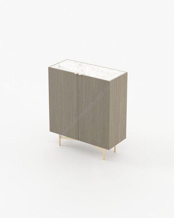 The Lewis bar cabinet was created to fulfill the needs of clients seeking the best in contemporary furniture. It features two large doors, several shelves, a metal base with crossbars, and a marble top. It is perfect for storing the finest liquors and distilled spirits.