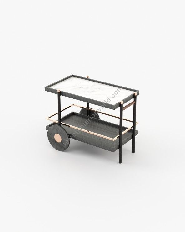 The Pitt tea cart is a versatile piece, perfect for hospitality projects or entertaining guests at home. The chic iron shelves and sturdy metal frame come in a customisable finish, while the tray is made from natural marble stone for added elegance.